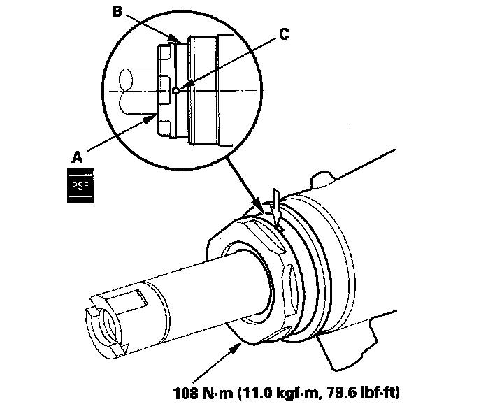 65. Install the new self-locking nut (A) onto the pinion shaft end, and tighten to the specified torque.