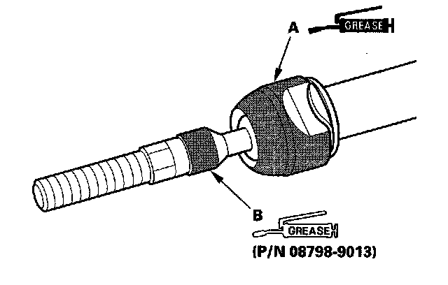 79. Apply a light coat of silicone grease to the boot grooves (B) on the rack ends.