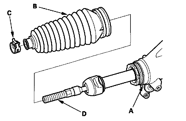82. After installing the boots, wipe any grease off the threaded section (D) of the rack end.