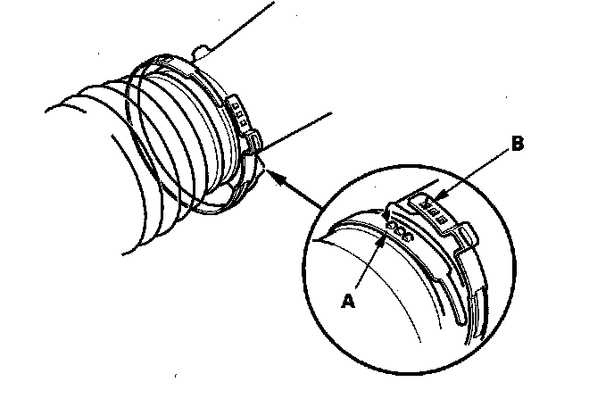 83. Install the new boot bands by aligning the tabs (A) with the holes (B) of the band.