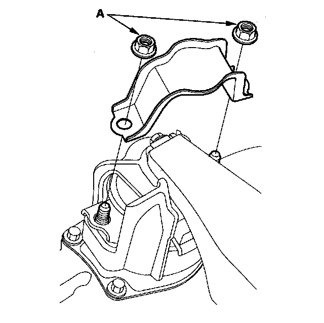 15. Remove the nuts (A) from the rear engine mount.