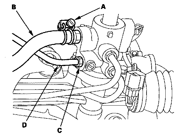 23. Loosen the 14 mm flare nut (C), and disconnect the feed line (D).