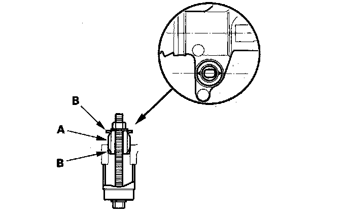 6. Install the gearbox mount cushion by tightening the nut until the mount cushion edges (B) properly fit on the gearbox flange surface.