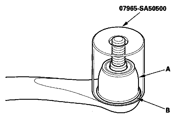 4. Install the new boot (A) using the special tool. The boot must not have a gap at the boot installation sections (B). After installing the boot, check the ball pin tapered section for grease contamination, and wipe it if necessary.