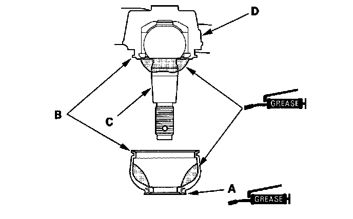 3. Wipe the grease off the tapered portion of the pin (C), and pack fresh grease into the base (D). Do not let dirt or other foreign materials get into the boot.