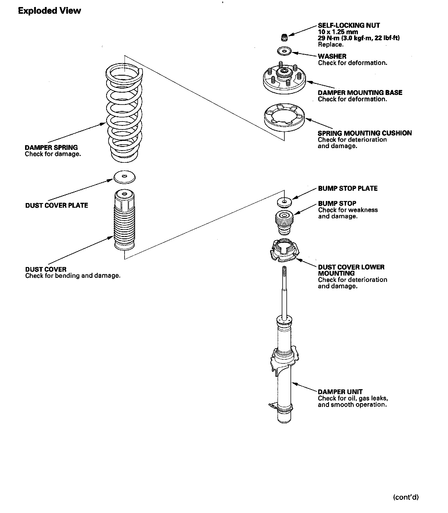 2. Release the pressure from the strut spring compressor, then disassemble the damper as shown in the Exploded View.