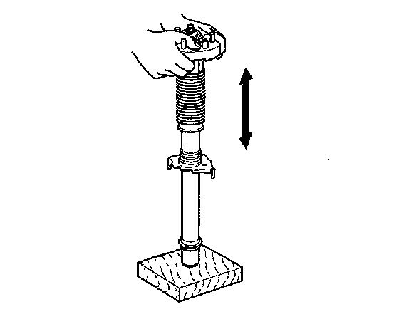 4. Compress the damper assembly by hand, and check for smooth operation through a full stroke, both compression and extension. The damper should extend smoothly and constantly when compression is released. If it does not, the gas is leaking and the damper should be replaced.