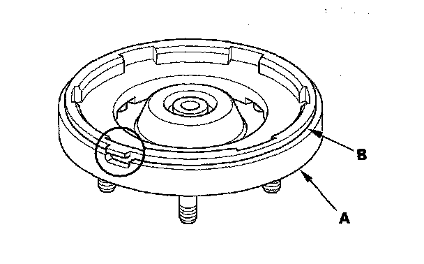 3. Align the bottom of the spring and the stepped part (B) of the lower spring seat.