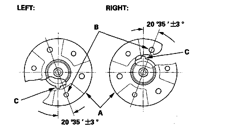4. Position the damper mounting base (A) so the stud bolt (B) is aligned with the aligning tab (C) in the damper unit as shown.