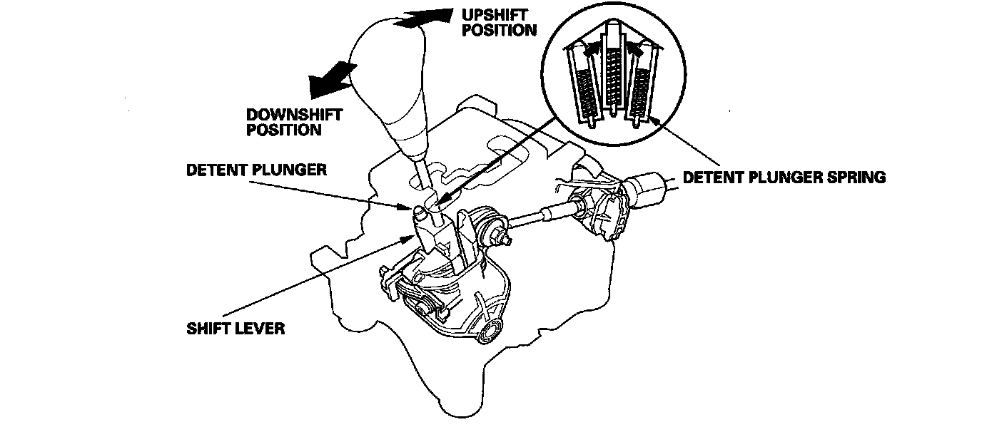 The shift lever fits into M by using a detent plunger with a spring. When shifting to upshift and downshift positions, the detent plunger is depressed by the detent bracket inner wall, and detent plunger spring puts the shift lever back into the neutral position. The detent plunger also works in P.