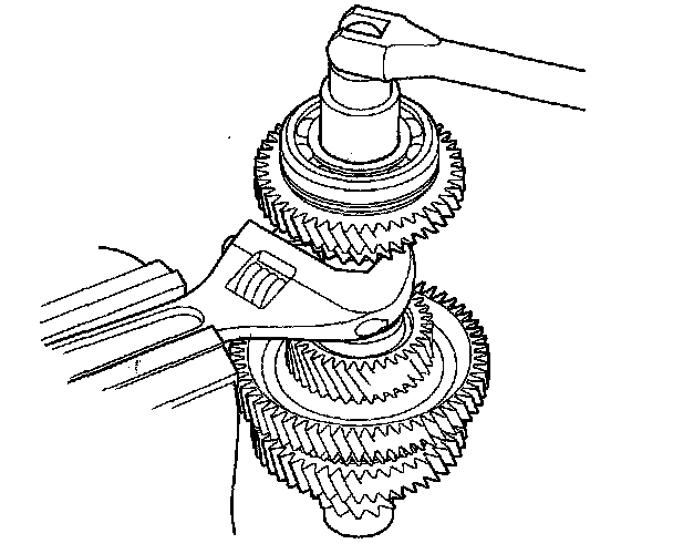 3. Also check 1st gear and the 1st-hold clutch hub for wear and damage. If 1st gear and 1st-hold clutch hub are worn or damaged, replace the damaged part, refer to 1st Clutch Hub Replacement.