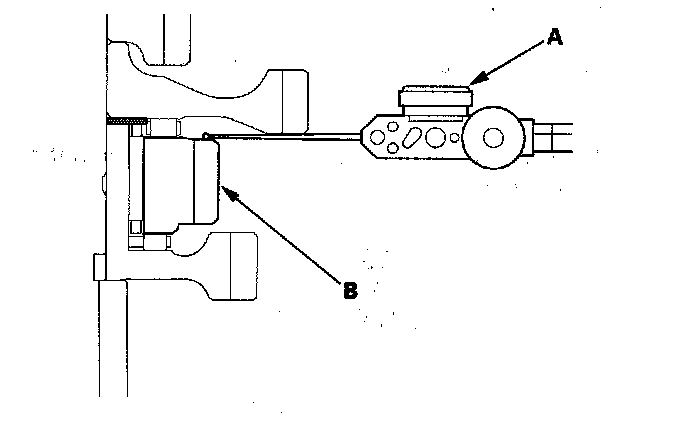 1. Hold the 1st-hold clutch hub (A), and turn 1st gear (B) in the direction shown to be sure it turns freely. Also make sure 1st gear locks in the opposite direction.