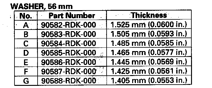 5. If the clearance is out of standard, remove the 56 mm washer and measure its thickness.