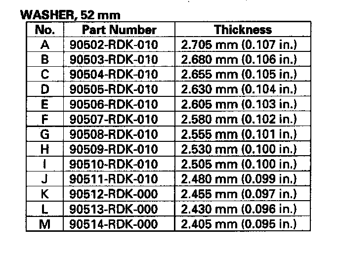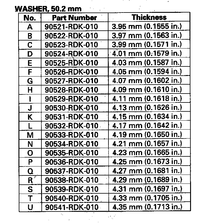 8. If the clearance is out of standard, remove the 50.2 mm washer and measure its thickness.