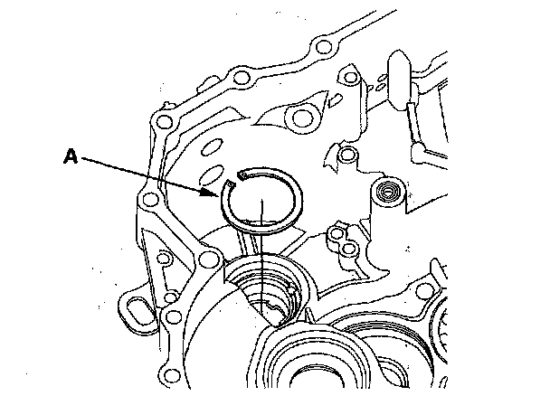 4. Remove the 65 mm thrust shim A) from the transmission housing, and measure its thickness.
