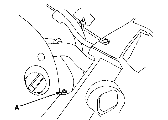 8. If necessary, fill the transmission with the ATF through the dipstick guide tube opening (A) to bring the fluid level midway between the upper mark and lower mark of the dipstick. Do not fill past the upper mark. Always use Acura ATF DW-1 (ATF Z1 has been replaced by ATF DW-1, Honda Service News Nov 2010) Automatic Transmission Fluid (ATF). Using a non-Acura ATF can affect shift quality.