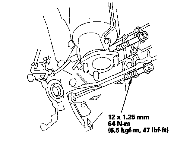 25. Loosen the right rear mounting bolt, then tighten the bolt to the specified torque.