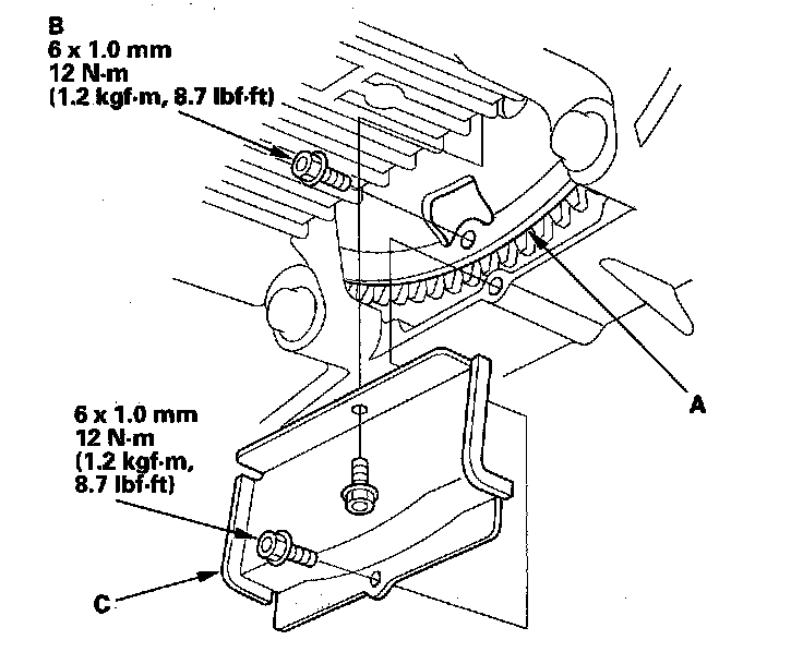 33. Install the torque converter cover (C).