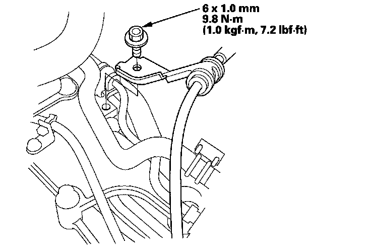 50. Install the shift cable bracket on the steering gearbox stiffener.