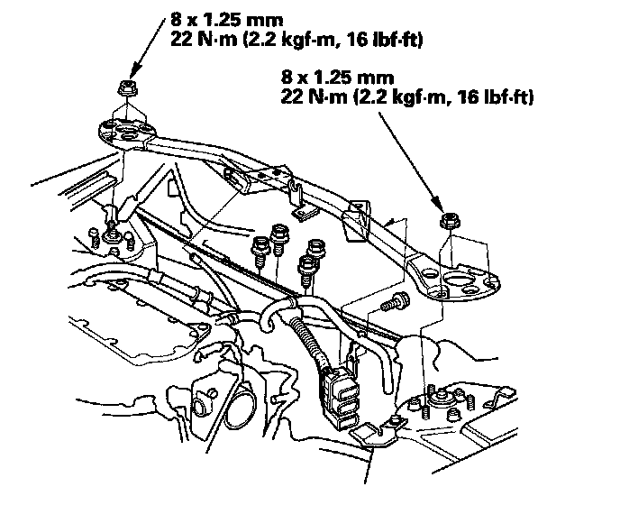 24. Partially tighten the right and left front subframe mounting bolts.