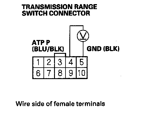 23. Measure the voltage between the transmission range switch connector terminals No. 4 and No. 5.