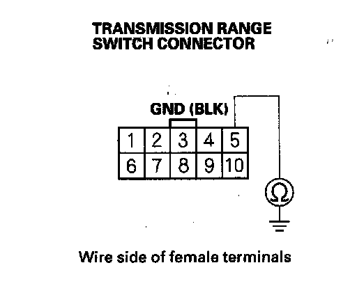 28. Check for continuity between the transmission range switch connector terminal No. 5 and body ground.