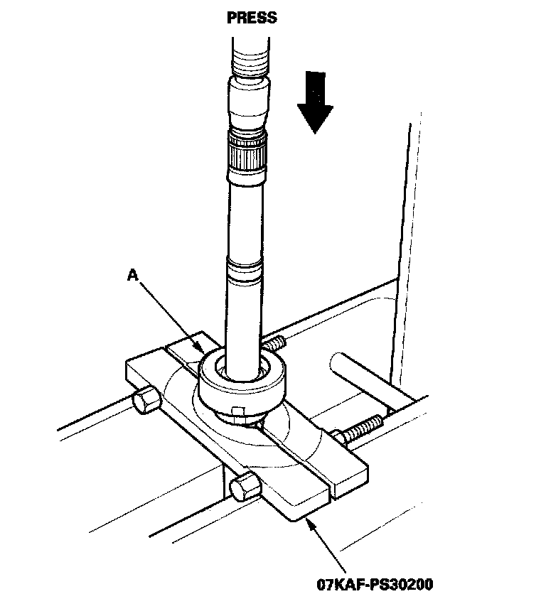 3. Remove the dynamic damper (A) using the special tool and a press as shown.