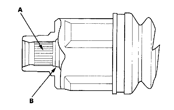 4. Install the outboard joint (A) into the front hub (B).
