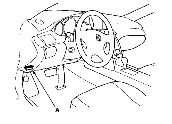 When the D indicator has been reported on, connect the HDS to the DLC (A) located under the left side of the dash. Turn the ignition switch to ON (II), select SCS mode, then the D indicator will flash the DTC.