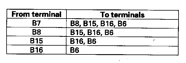 10. Check for continuity between the terminals of AcuraLink control unit (XM receiver) connector B (16P) as follows.