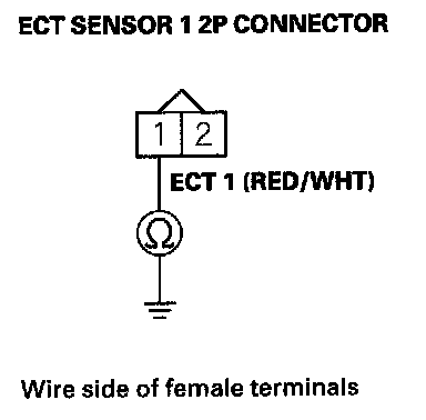 10. Check for continuity between ECT sensor 1 2P connector terminal No. 1 and body ground.
