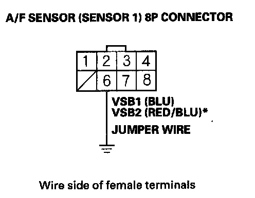 11. Remove the jumper wire from the A/F sensor (Sensor 1) 8P connector, then reconnect ECM/PCM connector B (24P).