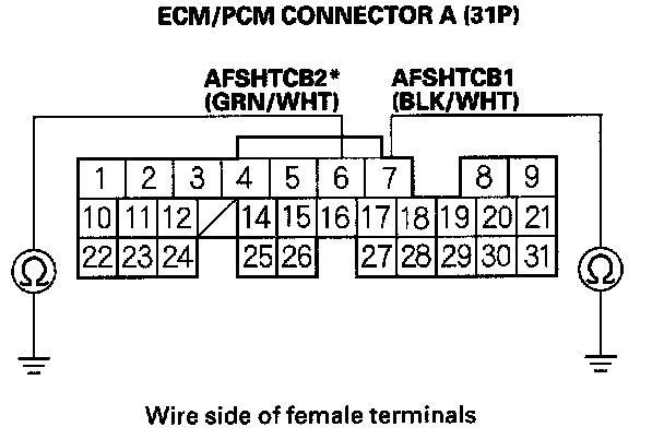 13. Check for continuity between ECM/PCM connector terminal A7 (A6)* and body ground.