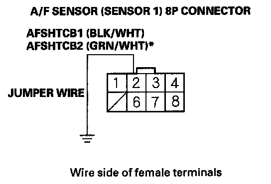14. Connect A/F sensor (Sensor 1) 8P connector terminal No. 2 to body ground with a jumper wire.