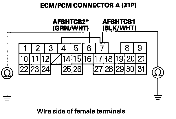 15. Check for continuity between ECM/PCM connector terminal A7 (A6)* and body ground.