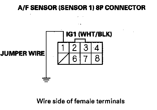 17. Connect A/F sensor (Sensor 1) 8P connector terminal No. 1 to body ground with a jumper wire.