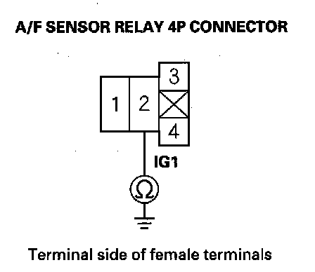 18. Check for continuity between A/F sensor relay 4P connector terminal No. 2 and body ground.
