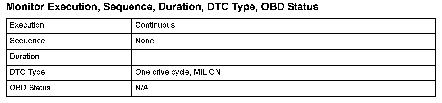 Monitor Execution, Sequence, Duration, DTC Type, OBD Status