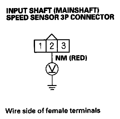 8. Measure voltage between input shaft (mainshaft) speed sensor 3P connector terminals No. 1 and No. 3.
