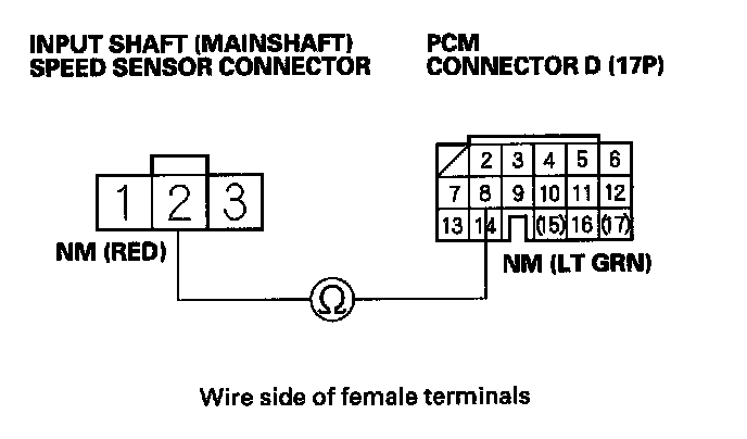 7. Disconnect the input shaft (mainshaft) speed sensor connector, and inspect the connector and connector terminals to be sure they are making good contact.