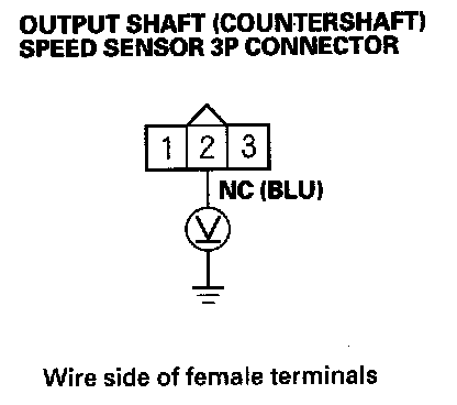 8. Measure voltage between output shaft (countershaft) speed sensor 3P connector terminal No. 2 and body ground.