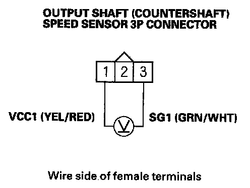 9. Measure voltage between output shaft (countershaft) speed sensor 3P connector terminals No. 1 and No. 3.