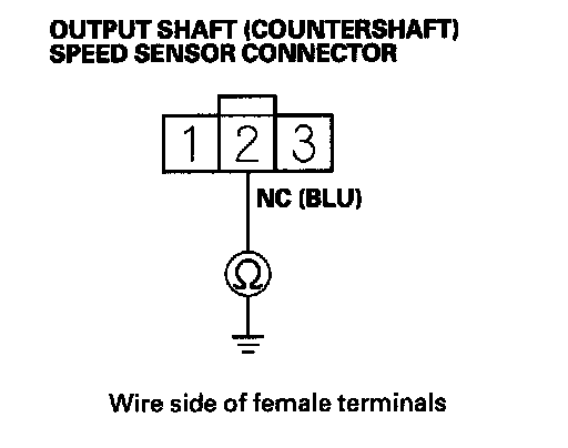 16. Check for continuity between output shaft (countershaft) speed sensor connector terminal No. 2 and body ground.