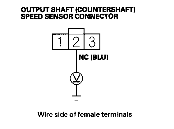 19. Measure the voltage between output shaft (countershaft) speed sensor connector terminal No. 2 and body ground.