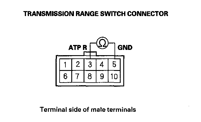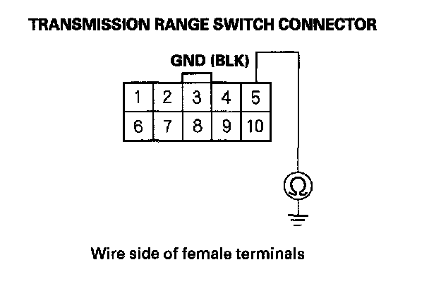 5. Check for continuity between transmission range switch connector terminal No. 5 and body ground.