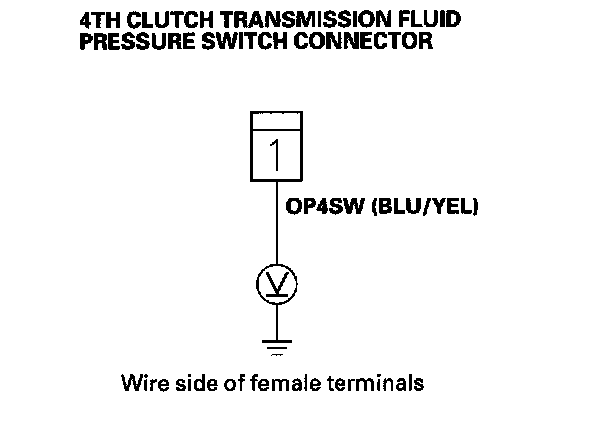 11. Measure the voltage between the 4th clutch transmission fluid pressure switch connector terminal and body ground.