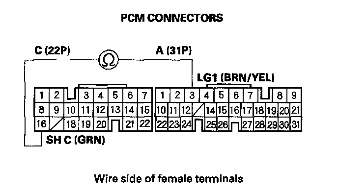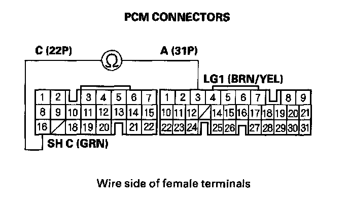 10. Disconnect PCM connectors A (31P) and C (22P).