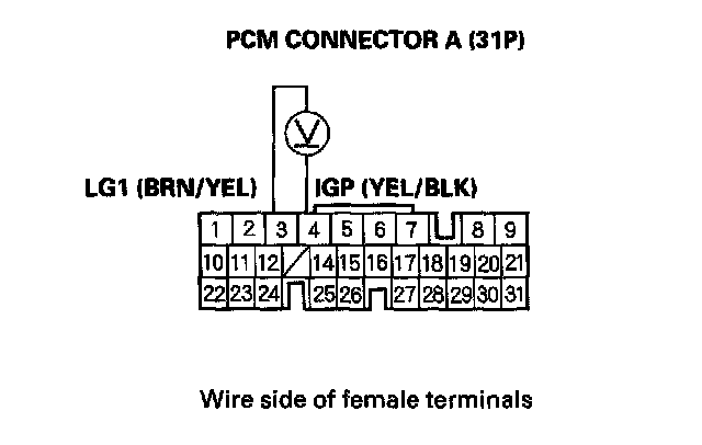 16. Measure the voltage between PCM connector terminals A4 and A3.