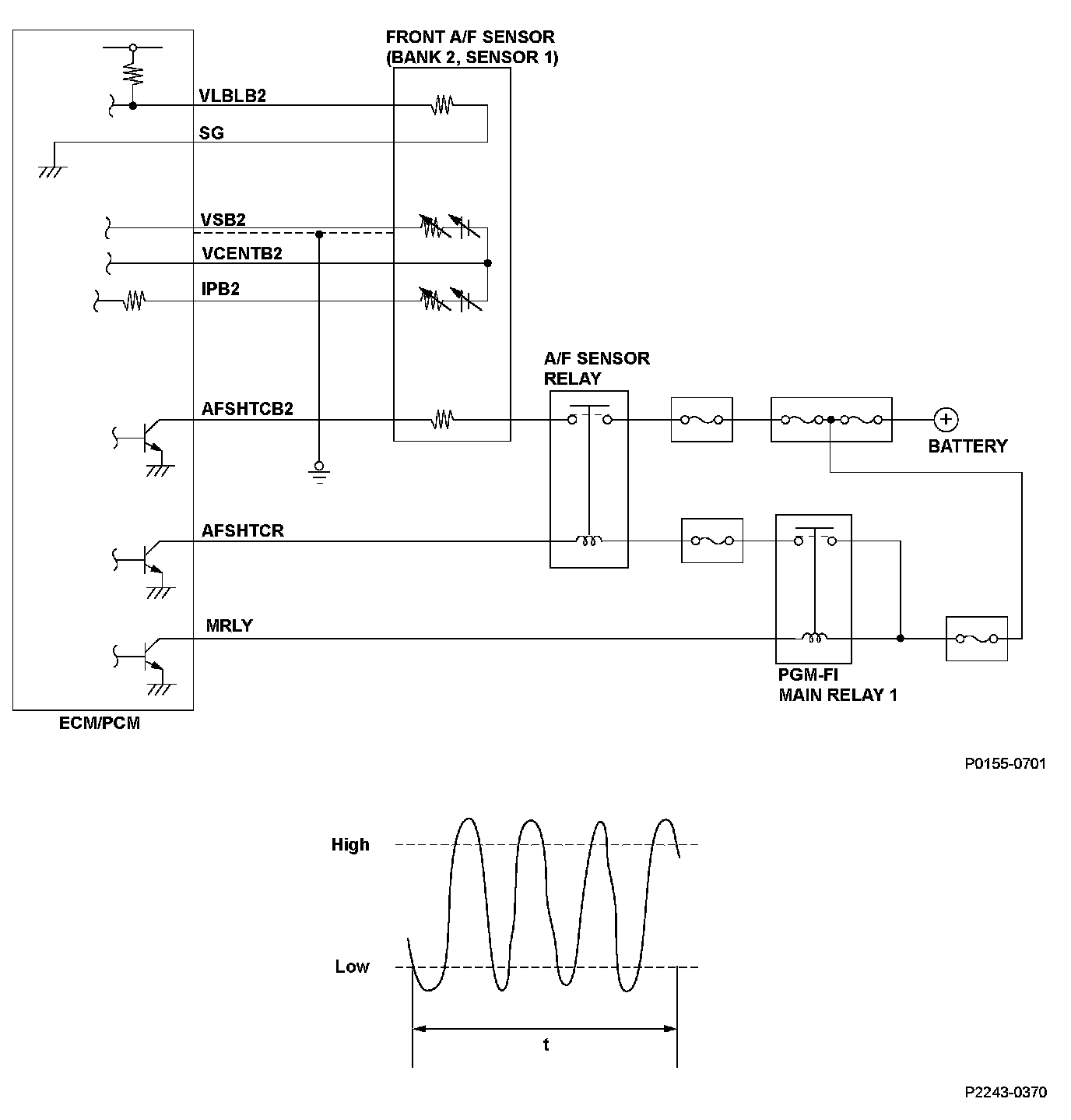 DTC P2247: Front Air/Fuel Ratio (A/F) Sensor (Bank 2, Sensor 1) VCENT Circuit High VoltageGeneral Description