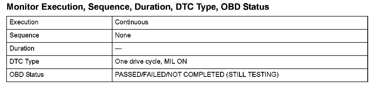 Monitor Execution, Sequence, Duration, DTC Type, OBD Status